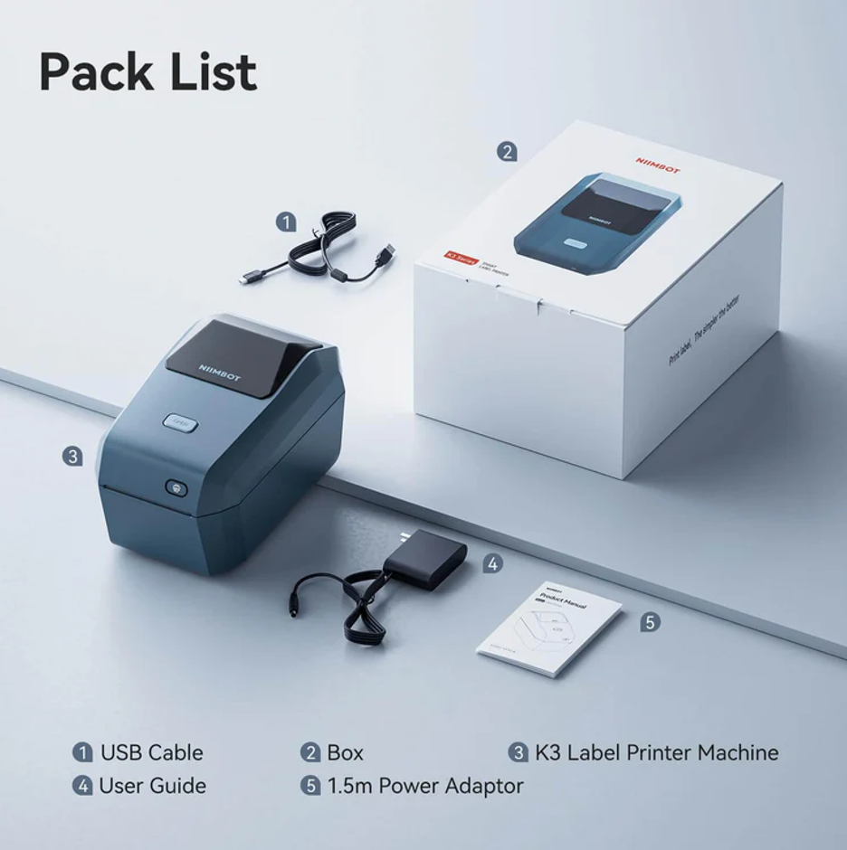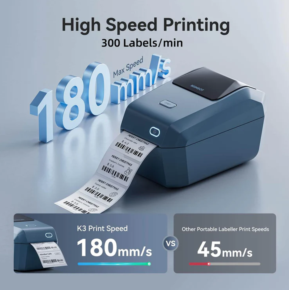 NIIMBOT K3, Taşınabilir, Mürekkepsiz, Termal Etiket Yazıcı (Bluetooth, Wifi) Uzay Mavisi