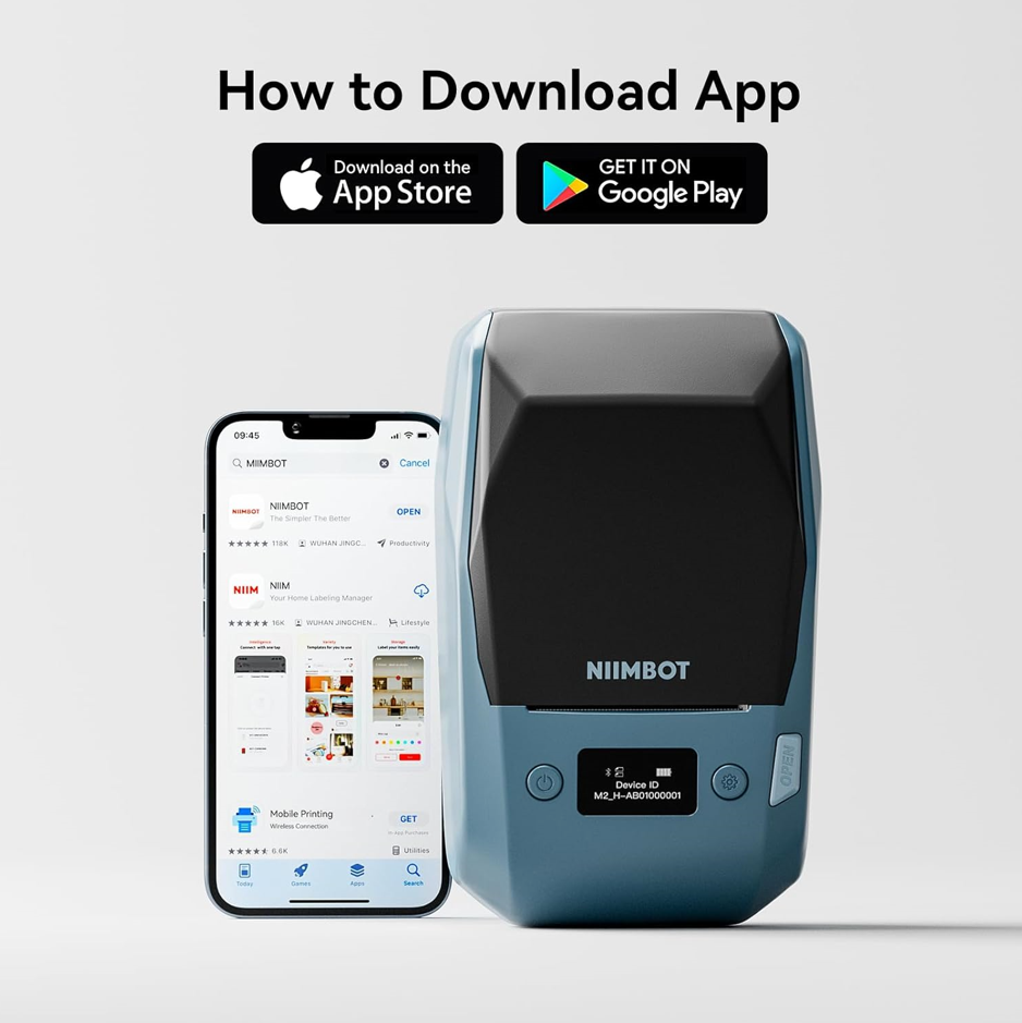 NIIMBOT M2, Taşınabilir, Akıllı Renk Baskısı, Termal Etiket Yazıcı (Bluetooth) Göl Mavisi